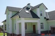Помимо листов, фирма предлагает круглый и ребровый конек, торцевые планки, боковое примыкание к стенке, ендовы, карнизные планки, фартуки, гвозди, набор для ремонта, т.е. полный комплект кровли.