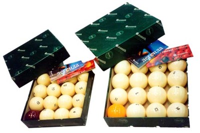 Всегда в наличии бильярдные шары для русской пирамиды, американского пула и снукера от недорогих, производства Тайвань, до признанных во всем Мире шаров марки "Aramith" бельгийской компании Saluc. Треугольники для расстановки шаров предсталены как в пластиковом, так и в деревянном исполнении |