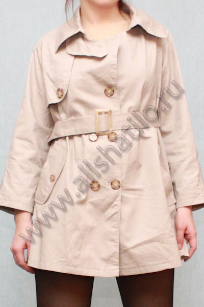 Плащ бежевого цвета с поясом на пуговках - Женская одежда