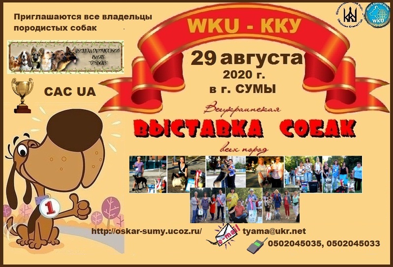 Организатор: Сумской областной клуб собаководства Кинологического Клуба Украины (WKU - Мировой Кинологический Союз (World Kennel Union).