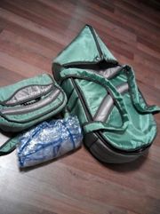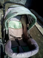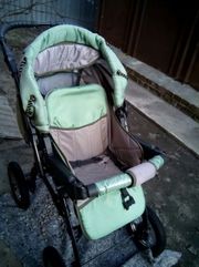 Коляска-трансформер надёжная, практичная и многофункциональная комфортная для детей от 0 до 3 лет Основные преимущества: перекидная ручка;пружинный механизм амортизации,регулирование спинки, ремни безопасности;водонепроницаемая ткань,надувные колеса. В комплекте: чехол;переносная люлька;сумка;дождевик;чехлы на колеса,корзина для покупок немножко изношенная,но пользоваться можно. |