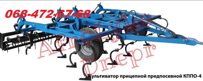 Культиватор прицепной предпосевной обработке КППО-4, в сборе с катком и пружинной бороной. Основное назначение культиватора КППО-4 почвообрабатывающего предпосевного – основная и предпосевная обработка почвы с умеренным количеством растительных остатков. За один проход культиватора обеспечивается: измельчение и перемешивание с почвой растительных остатков 100 % уничтожение сорняков сплошную культивацию на строго заданную глубину разравнивание почвы, разбивание комков и вычёсывание срезанных сорняков пружинными зубьями дробление, выравнивание и уплотнение почвы ребристыми каткам. Культиватор КППО 4. |